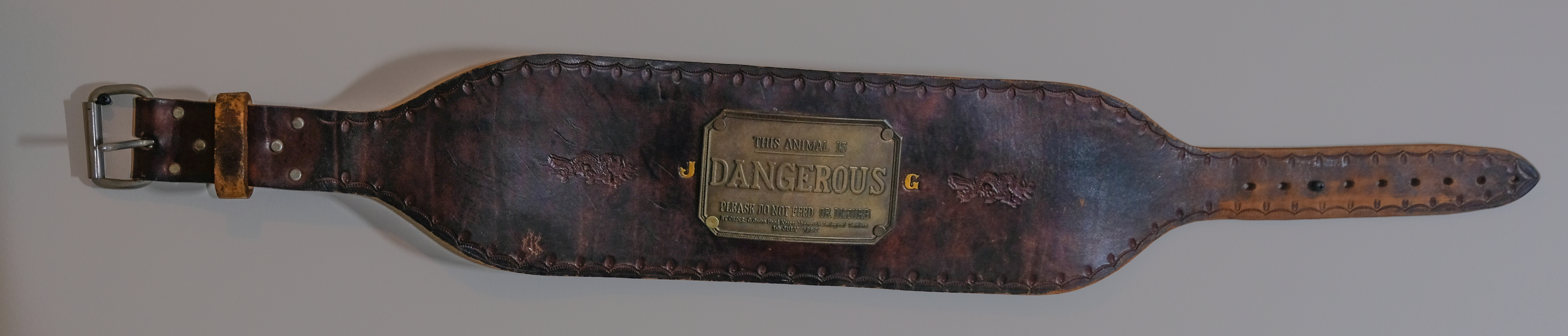 The plate says “This Animal is Dangerous, Please do Not feed or Disturb”. I’m not sure if I thought I was really a dangerous animal, but I'm sure my desires ran in that direction. I've had this belt for 46 years now, and I still think its cool, although I gave up doing squats long ago.